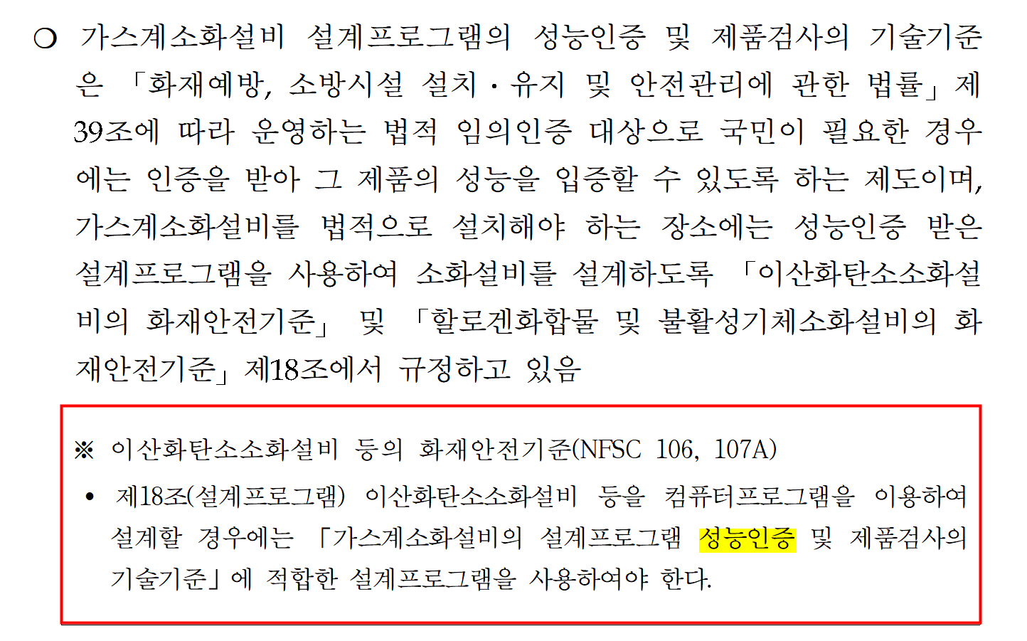(고시 제2016-46호)가스계소화설비 설계프로그램의 성능인증 및 제품검사의 기술기준 & 성능인증_및_제품검사시험세칙