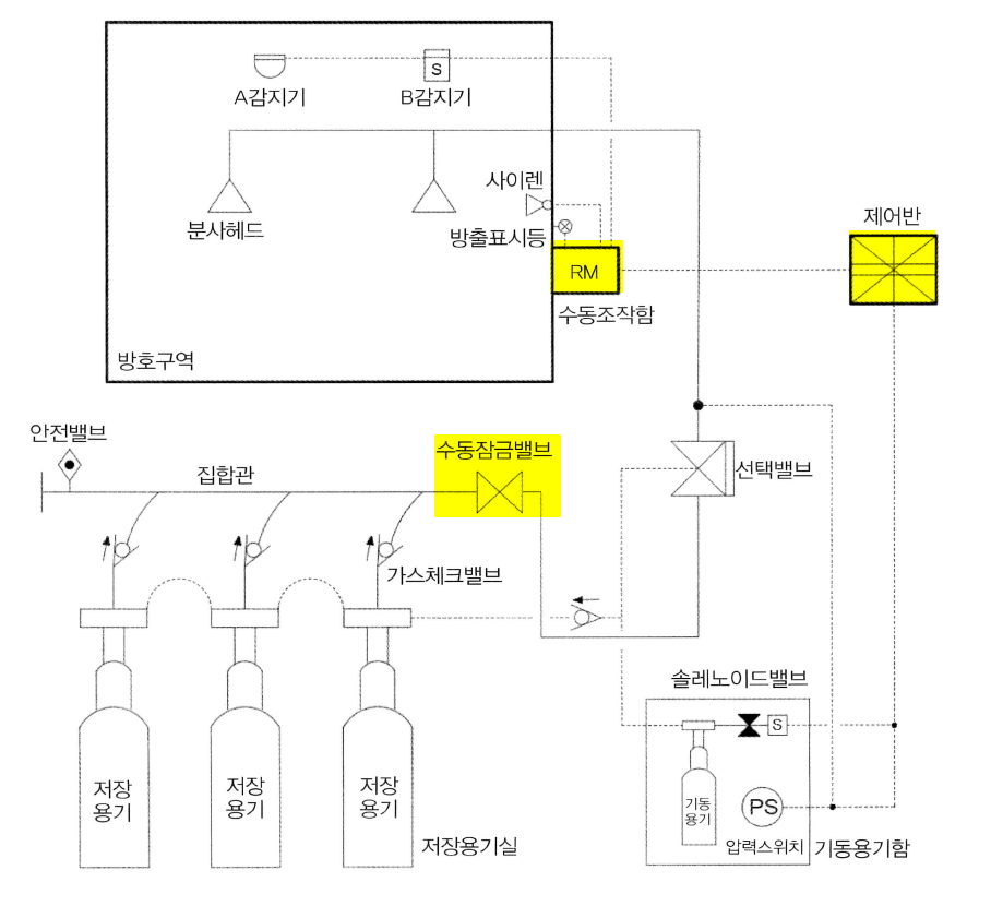 *화재시 설비동작 : "솔레노이드 밸브 작동 > 니들밸브 작동(압력스위치 작동) " > 니들밸브 작동 > 니들밸브 작동 순으로 동작합니다.