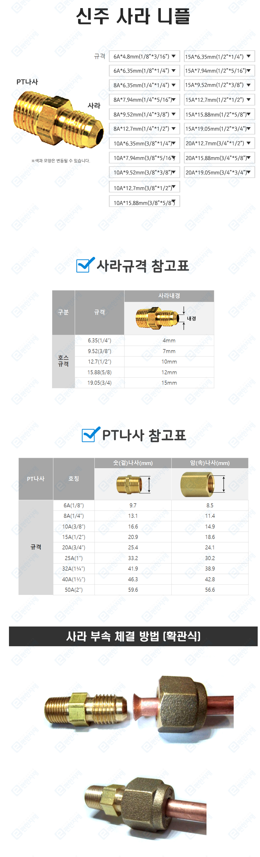니플 규격 : 20A(출고시) , 18A --- SV 출고시 20A 포함