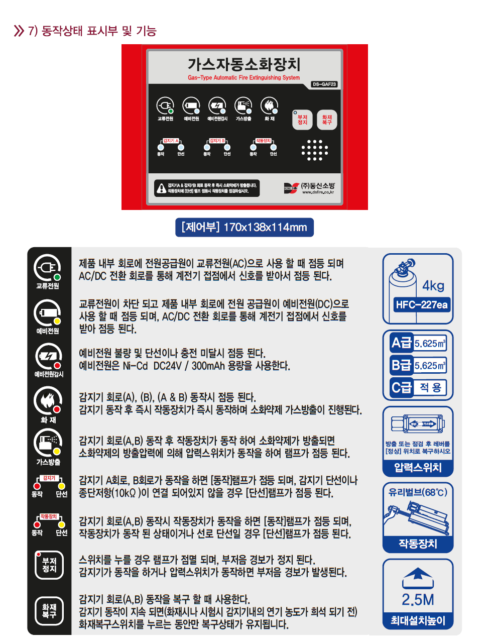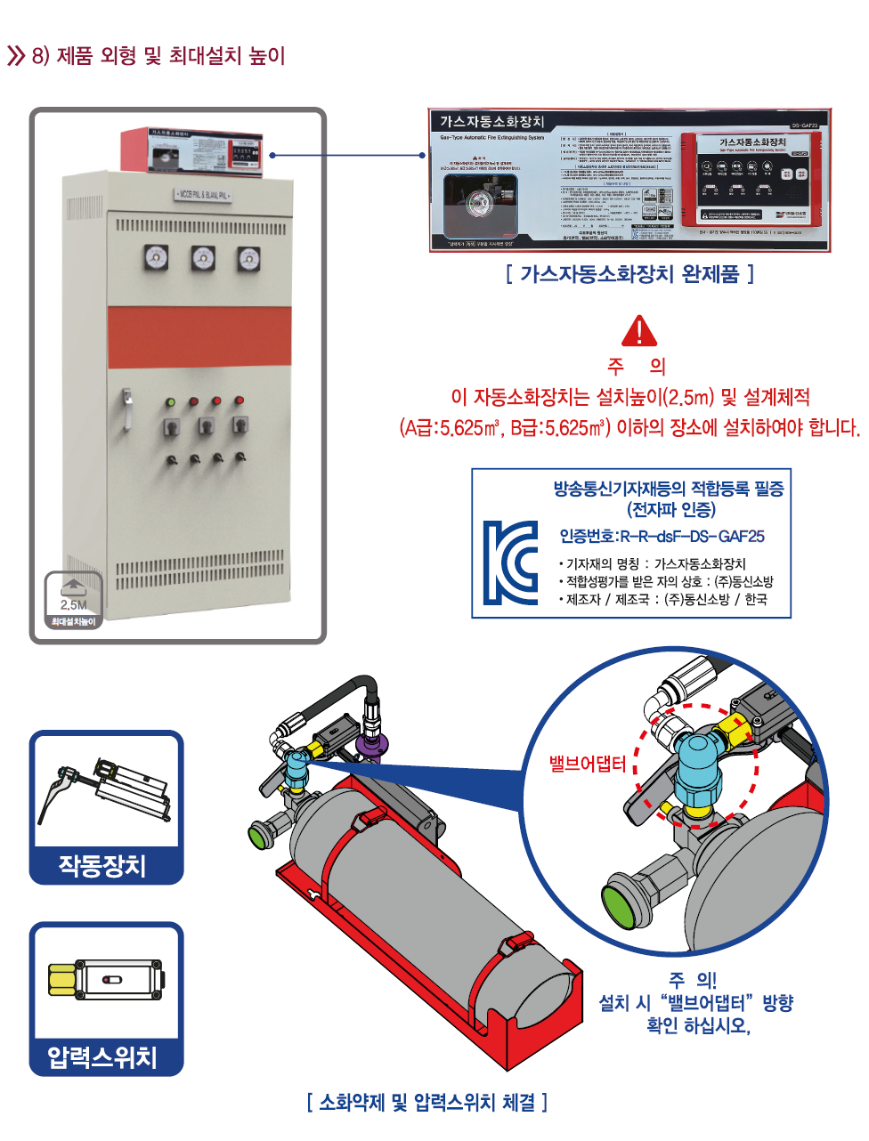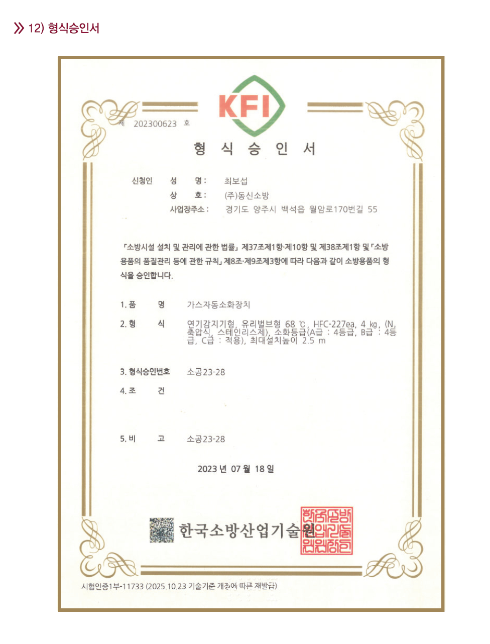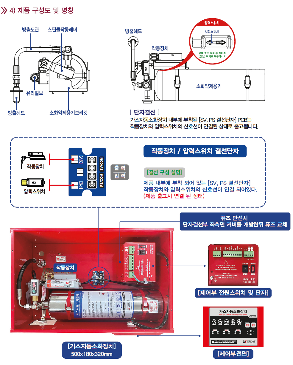가스자동소화장치(소공23-28)-제품사양서 / "한국소방산업기술원 형식승인 취득"