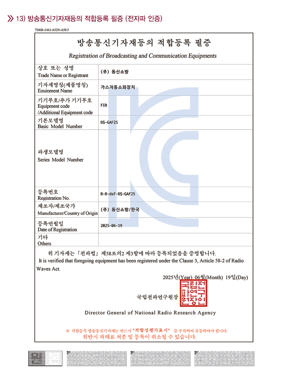 본 제품은 기술기준 개정에 따른 변경사항 적용(개정 2024.07.25)