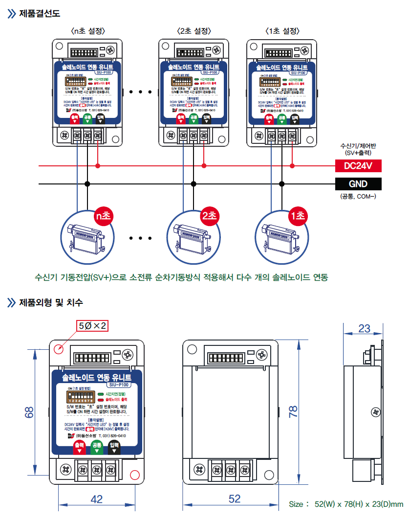-. 솔레노이드 연동/기동 시간 1초 ~ 15초 변경 사용 가능 (DIP S/W)